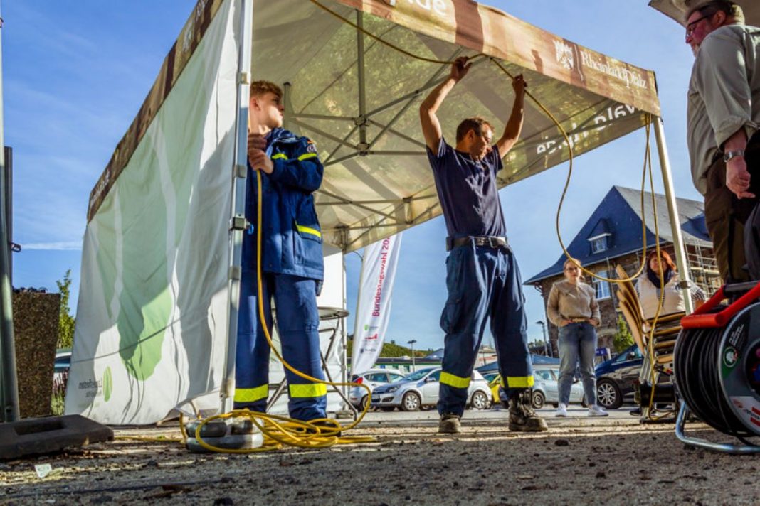 Kräfte der Bundesanstalt errichten zur Stimmabgabe provisorische Zelte für die Wahlkabinen und Urnen an zwei öffentlichen Plätzen in Bad Neuenahr. Ebenso stellten die Helferinnen und Helfer des THW die Stromversorgung und Beleuchtung der provisorischen Wahllokale sicher. „Als Bundesbehörde ist es für das THW unter diesen besonderen Bedingungen ein wichtiges Anliegen, die Wahl in den betroffenen Gemeinden zu ermöglichen“, erklärte dazu THW-Präsident Gerd Friedsam.