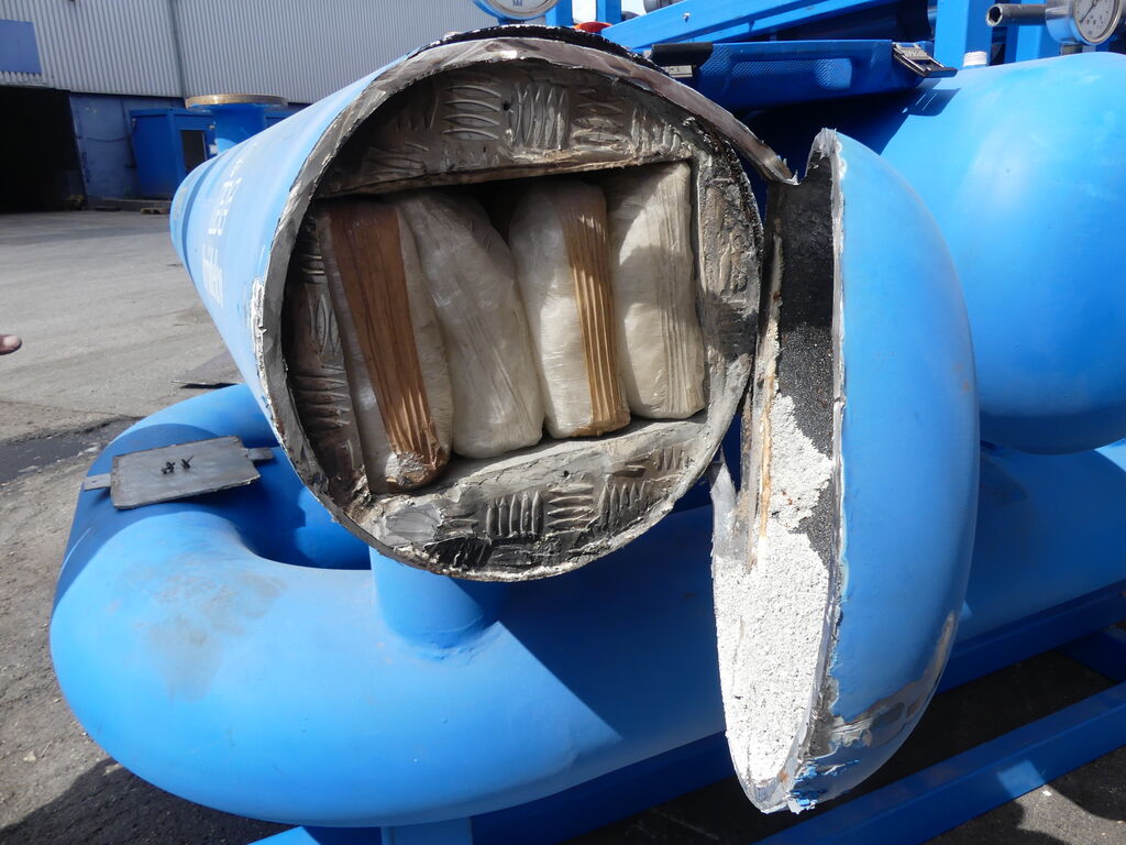 Der Einsatz von Schweißgeräten brachte im Anschluss 194 Pakete Crystal Meth aus den Filterröhren ans Tageslicht. Das Methamphetamin war aufwendig in den Röhren der Maschine versteckt.