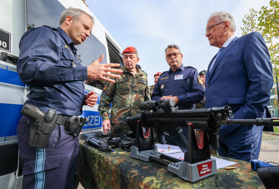 Bei Terroranschlägen oder in anderweitig lebensbedrohlichen Lagen wird jede helfende Hand gebraucht. Deshalb bauen die Bayerische Polizei und die Bundeswehr im Rahmen der zivil-militärischen Zusammenarbeit die Kooperation in derartigen Situationen aus. Federführend bei der Inneren Sicherheit im Freistaat bleibt aber die Polizei.