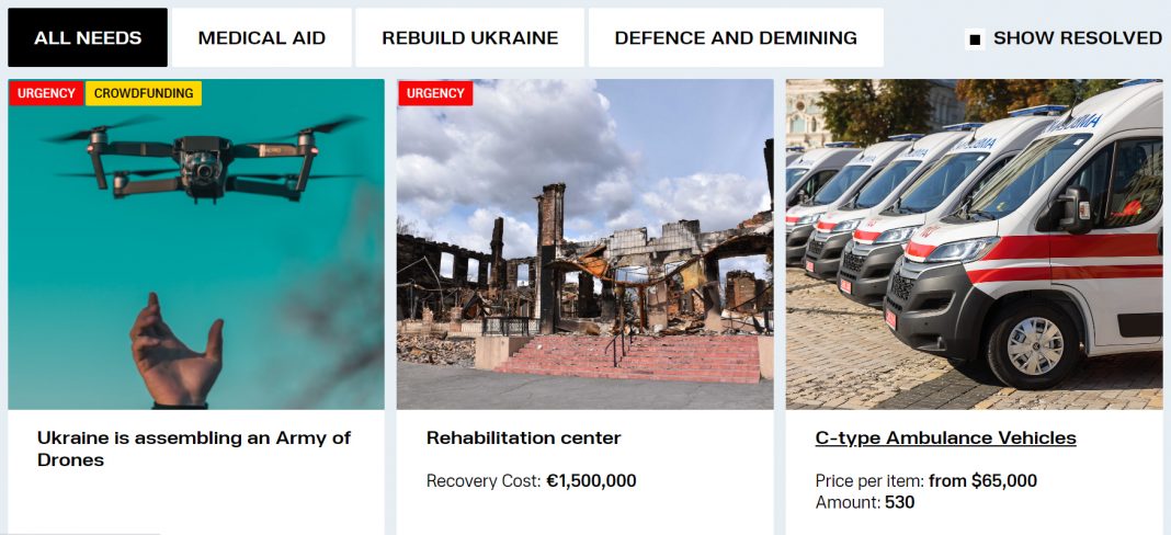 Die Ukraine setzt auch bei der Finanzierung auf moderne Methoden. So initiierte der Präsident der Ukraine eine Crowdfunding-Plattform, wo Spender aus der ganzen Welt einfach via Kreditkarte, Überweisung oder Kryptowallet direkt ein Projekt unterstützen können.