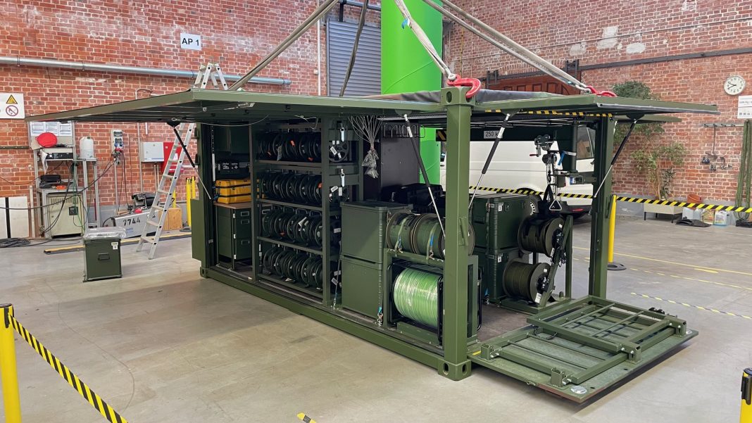 „Die ersten vier Rüstsätze dieser sogenannten Netzservicetrupps (NServTrp) wurden kürzlich durch das BAAINBw, nur acht Monate nach Vertragsschluss mit der Firma Leonardo, übernommen. Mit den 43 bestellten Rüstsätzen soll sowohl das Deutsche Heer als auch der Bereich Cyber- und Informationsraum flächendeckend ausgestattet werden“, so das BAAINBw. „Die NServTrp sind digitalfähige Kabelbautrupps, die die autarke Netzanbindung sowie die Herstellung von eigenen Zugangsnetzen über Entfernungen von bis zu zwei Kilometern ermöglichen. Diese Rüstsätze sollen die Gefechtsstände schnell und bedarfsgerecht verkabeln und anbinden. Dazu sind die NServTrp in Kabinen mit ISO-Beschlägen verbaut, sodass die Rüstsätze flexibel mit entsprechenden Fahrzeugen transportiert und – auch im aufgeladenen Zustand – mobil genutzt werden können. Sowohl das Kabinenheck als auch die Seitenwände sind aufklappbar und das Material ist in Regal- und Verstausystemen verbaut.“