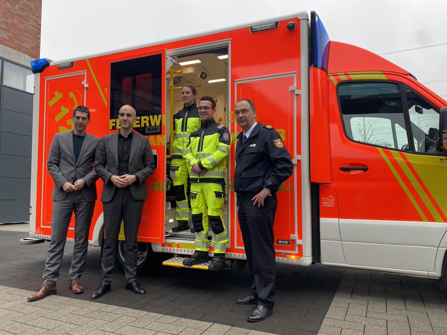 Zudem biete der eRTW neben dem Aspekt des Klimaschutzes gegenüber den konventionell angetriebenen Modellen ein sehr gutes Beschleunigungsvermögen, eine sehr gute Straßenlage sowie sehr geringe Fahrgeräusche im Innenraum, so Bahlmann. Ebenso sei der Innenausbau des eRTW fast identisch zu den dieselbetriebenen Modellen. Diese einheitliche Ausstattung sei für die zielgerichtete und schnelle Behandlung von Patientinnen und Patienten unter Notfallbedingungen von besonderer Bedeutung.