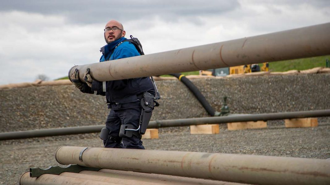 An der Verlegeübung Air Defender 23 nehmen 24 Nationen mit 220 Luftfahrzeugen teil. Um diese zu betanken, erbaut die Streitkräftebasis mit dem Spezialpionierregiment 164 auf dem Fliegerhorst im niedersächsischen Wunstorf ein Feldtanklager. Zu diesem Zweck ist eine Pipeline zu errichten. Einige Soldatinnen und Soldaten tragen bei dieser körperlich anstrengenden Arbeit Exoskelette.