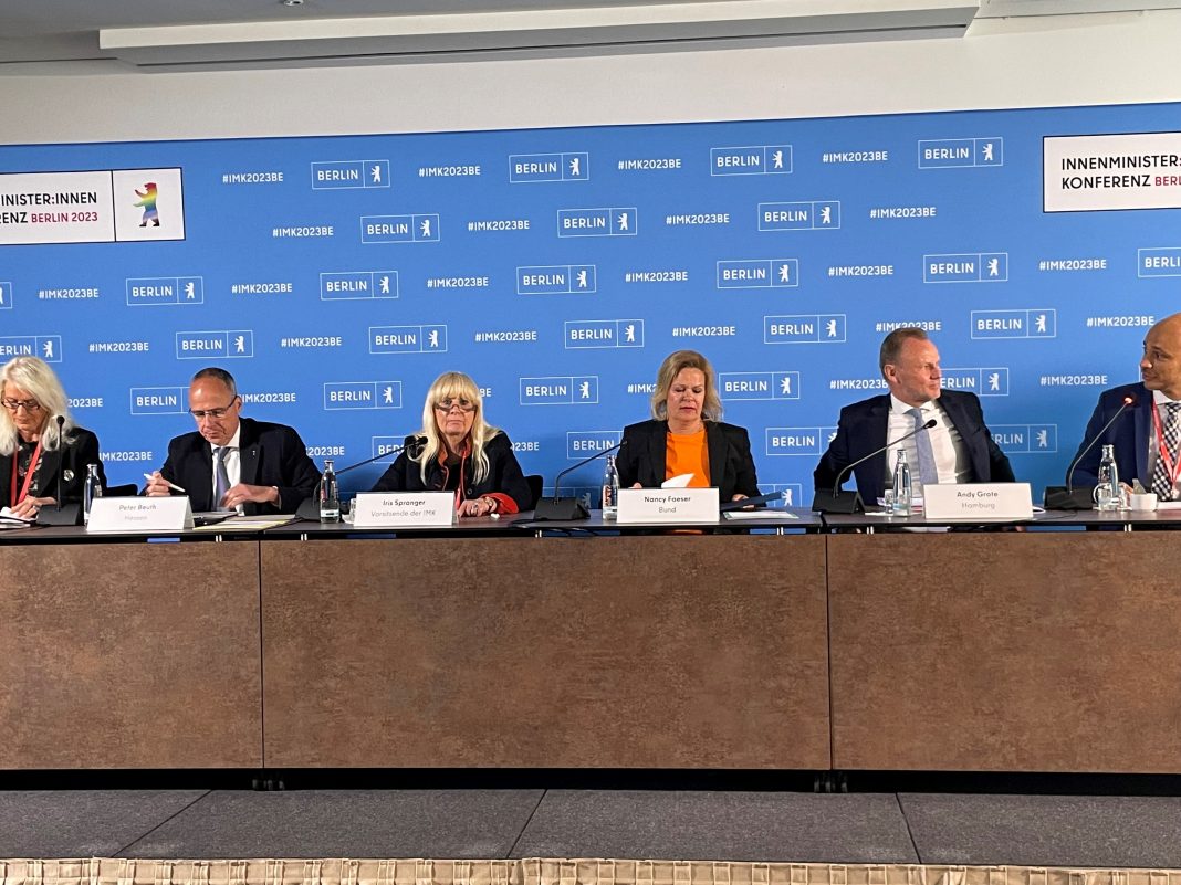 Des Weiteren betont die IMK erneut, insbesondere eine gesetzliche Speicherverpflichtung von IP-Adressen und Portnummern im Sinne einer Vorratsdatenspeicherung für einen ausreichend langen Zeitraum könne sicherstellen, dass Täterinnen und Täter identifiziert werden. Das werde ganz besonders im Bereich der sexualisierten Gewalt zum Nachteil von Kindern und Jugendlichen deutlich. Dazu sagte Spranger: „Die Meldungen der US-amerikanischen Nichtregierungsorganisation „National Center for Missing and Exploited Children“ haben uns vor Augen geführt, wie groß das Dunkelfeld dieser Taten ist, wie viel Arbeit noch vor uns liegt und wie dringend sie erforderlich ist.“ Wo Täterinnen und Täter den digitalen Raum ausnutzten, sich über Grenzen hinwegsetzten, müsse man über Grenzen hinausdenken und zusammenwirken, so Spranger. Beuth kritisierte, dass mit Blick auf die Vorratsdatenspeicherung auf Bundesebene offenbar keine Einigung zu erzielen sei.