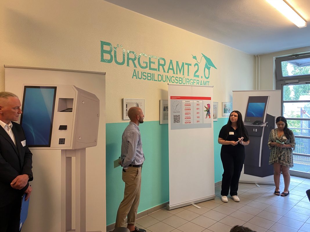 Im Ausbildungsbürgeramt Friedrichshain-Kreuzberg entsteht ab diesem Spätsommer das Modellprojekt „Bürgeramt der Zukunft“. Es soll das „Erlebnis im Bürgeramt angenehmer gestalten“, erklärt Berlins CDO, Martina Klement. Elemente des Projektes sind ein „Self-Check-in“ wie beim Flughafen, ein modernes Wegeleitsystem und eine Fotostation.