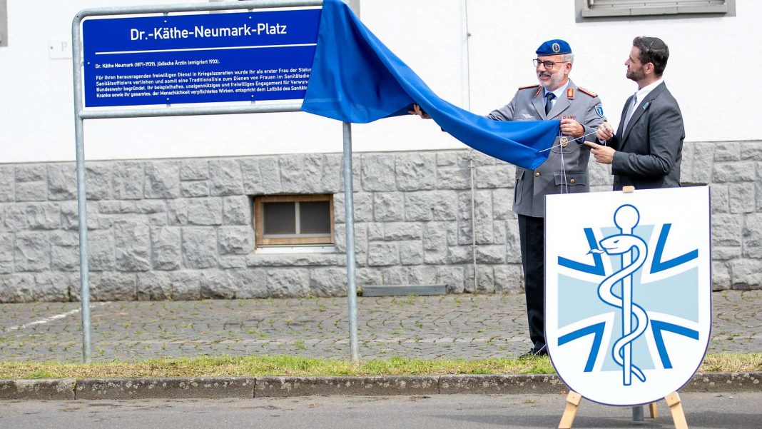 Neben den drei Straßen erhält auch ein zentraler Platz auf der Kaserne einen neuen Namen. Der Dr.-Käthe-Neumark-Platz ist nach einer deutsch-jüdischen Ärztin benannt. Als erste deutsche Militärärztin verrichtete sie ihren Dienst während des Ersten Weltkrieges. Nach der Machtergreifung der Nationalsozialisten im Jahr 1933 emigrierte sie in die Niederlande. Dort starb sie 1939. Zukünftig werden alle militärischen Appelle in der Falckenstein-Kaserne am Dr.-Käthe-Neumark-Platz stattfinden.