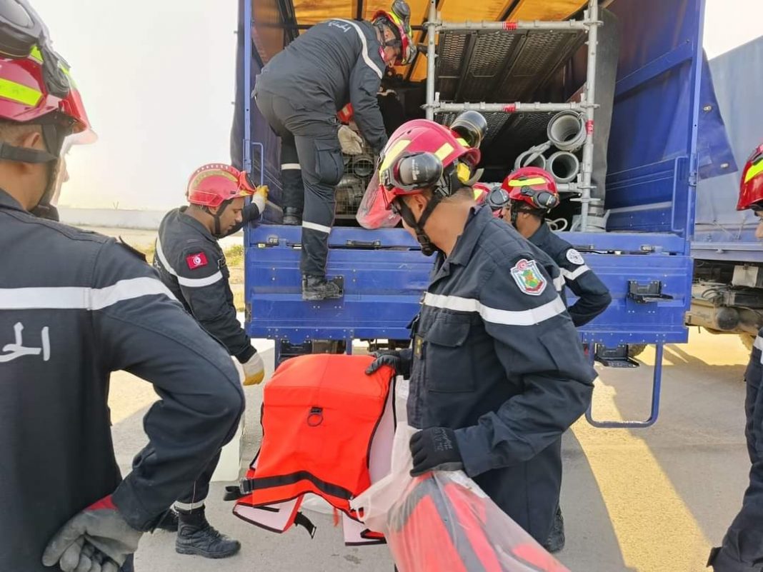 Denn: Die vom THW teilweise ausgebildete und ausgestattete tunesische Bevölkerungsschutzbehörde „Office National de la Protection Civile“ (ONPC) ist mit einem 42-köpfigen Team in Libyen im Einsatz. Die Ausbildung der tunesischen Kräfte begann schon im Rahmen einer Projektarbeit 2013. Ziel des Projektes ist es, in Tunesien einen ehrenamtlichen Bevölkerungsschutz, angelehnt an die Strukturen im THW, aufzubauen. Zusätzlich stattete das THW die ONPC-Kräfte mit ehemalige Einsatzfahrzeuge und Ausstattung aus.