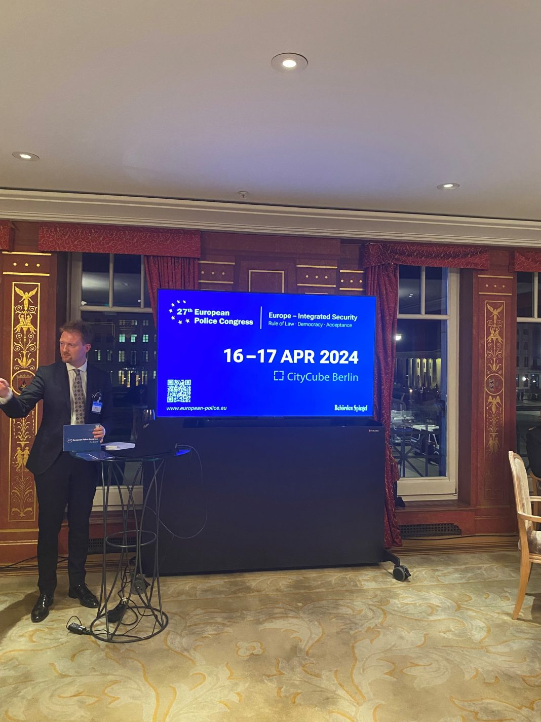 Der Europäische Polizeikongress ist die internationale Plattform für die Führungsebene der europäischen Polizeien. Im April nächsten Jahres findet die 27. Auflage der Veranstaltung in Berlin statt. Diesen November haben sich Polizeiattachés aus ganz Europa und den USA zu einem Pre-Event im Hotel Adlon am Brandenburger Tor getroffen, um Schwerpunkte für die kommende Veranstaltung zu definieren.