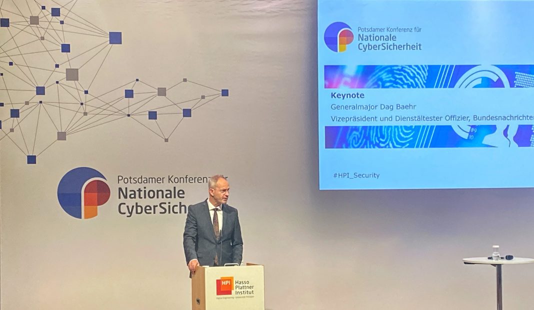 „Netzwerke und Datenhaltung“ der Ukraine seien gut aufgestellt und hätten viele russische Cyber-Attacken abgewehrt. Dag Baehr gab auf der Potsdamer Konferenz für Nationale CyberSicherheit Einblick in den Cyber-Krieg zwischen den beiden Staaten. Der Generalmajor des Heeres der Bundeswehr und Dienstälteste Offizier des BND fügte hinzu, dass Russlands „Umstieg auf Kriegswirtschaft“ die Ressourcen für Cyber-Spionage verknappt hätte. Putins „Reiseverhalten“ nach Nordkorea zeige ebendiese Ressourcenknappheit und den Versuch, Unterstützung vom Regime in Pjöngjang zu erhalten. Dennoch hält Baehr die Bedrohung für die deutsche Wirtschaft durch Russland für unverändert hoch. Zwar seien mittelständische deutsche Unternehmen mittlerweile besser auf Ransomware-Angriffe vorbereitet, speziell die Gefahr des Datenabflusses bestehe aber weiterhin.