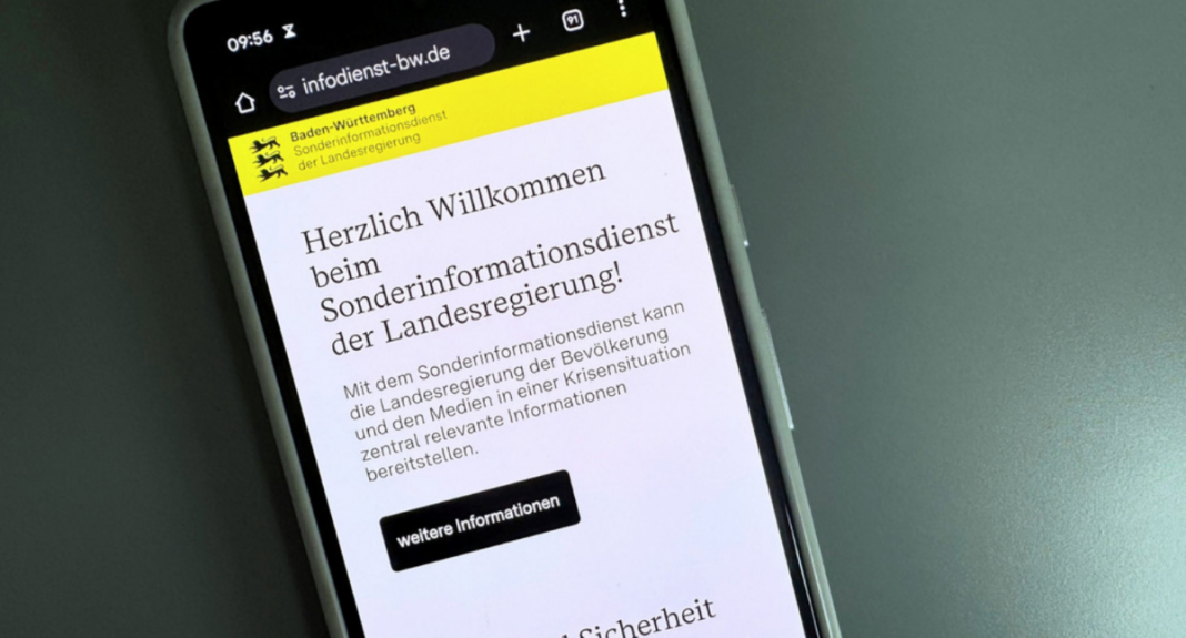 Das Innenministerium in Stuttgart hat das sogenannte „Kriseninternet“ vollständig überarbeitet und in Betrieb genommen. Über dieses „Internet“ sollen sich Bürgerinnen und Bürger in Krisensituationen schnell und unkompliziert über aktuelle Entwicklungen informieren und Verhaltenshinweise erhalten.