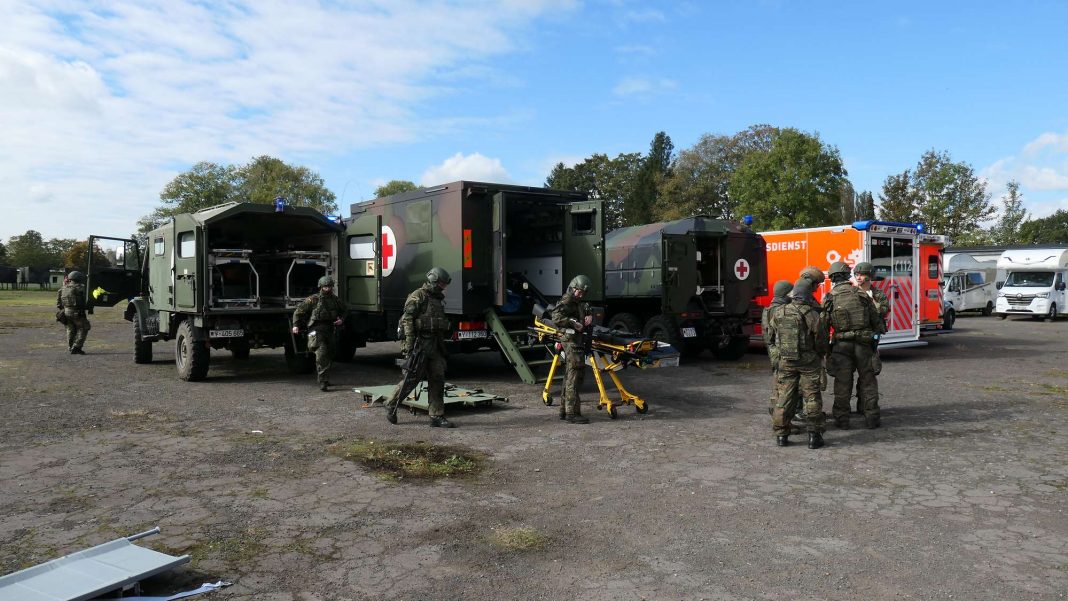 Im Rahmen der Übung „Lokale Katastrophenschutzübung interdisziplinär 2024“ übten etwa 300 zivile und militärische Kräfte auf dem Düsseldorfer Mobilmachungsstützpunkt.