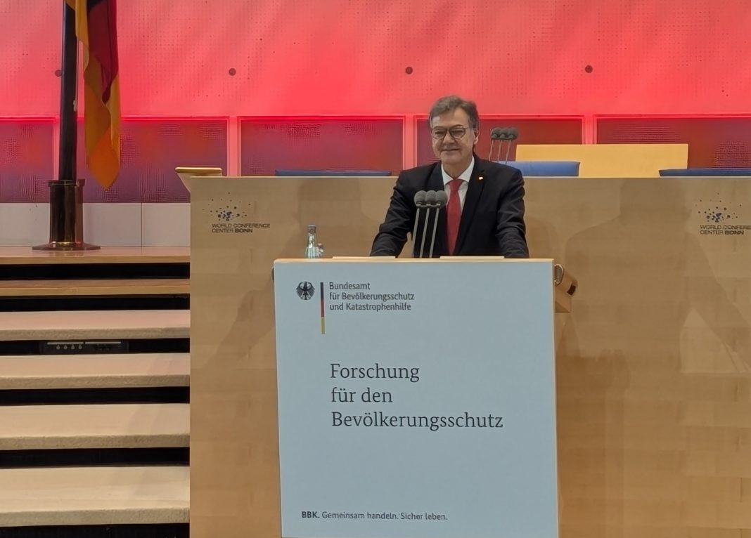 „Der Blick in die Presse und auf unsere Schreibtische macht deutlich, wie herausfordernd, vielfältig und dringend die Aufgaben im Bereich des Zivil- und auch des Katastrophenschutzes sind“, sagt Ralph Tiesler, Präsident des Bundesamtes für Bevölkerungsschutz und Katastrophenhilfe (BBK), anlässlich der Eröffnung des zweiten Forschungskongress des BBK. Er fordert intensivere Vorbereitungen im Bereich des Zivilschutzes. Man habe nur noch vier Jahre, um zivilschutztüchtig zu werden.