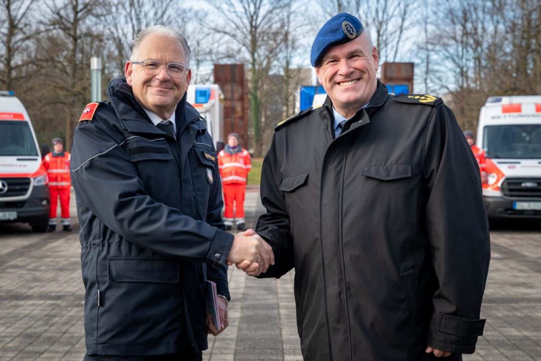 Hilfsorganisation bereit, Verantwortung zu übernehmen. „Die aktuellen sicherheitspolitischen Entwicklungen machen deutlich: Landes- und Bündnisverteidigung ist eine gesamtstaatliche Aufgabe. Deswegen ist eine funktionierende und belastbare zivil-militärische Zusammenarbeit notwendiger denn je. Die Verlässlichkeit ziviler Unterstützung in einem militärischen Verteidigungsszenario ist ein entscheidender Erfolgsfaktor“, sagte Generaloberstabsarzt Dr. Ralf Hoffmann, Befehlshaber des Zentralen Sanitätsdienstes der Bundeswehr.